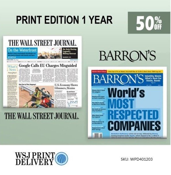 Dive into the financial world with subscriptions to both WSJ and Barron’s. With WSJ Print, receive your inaugural issue within three business days, coupled with digital access within 24 hours and the flexibility to modify your delivery address. Barron’s Print complements your financial understanding with weekly delivery, investment analysis, and full access to Barrons.com and the Barron’s app, providing a comprehensive experience in financial news and insights.